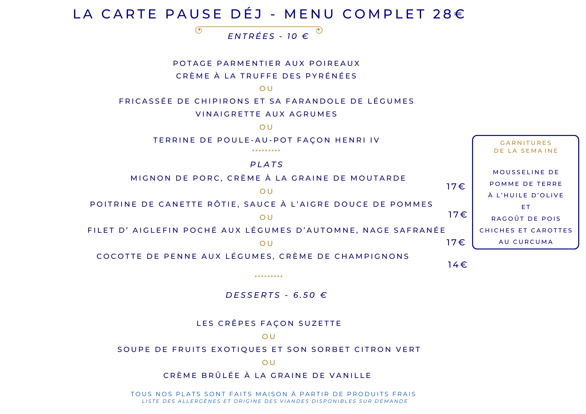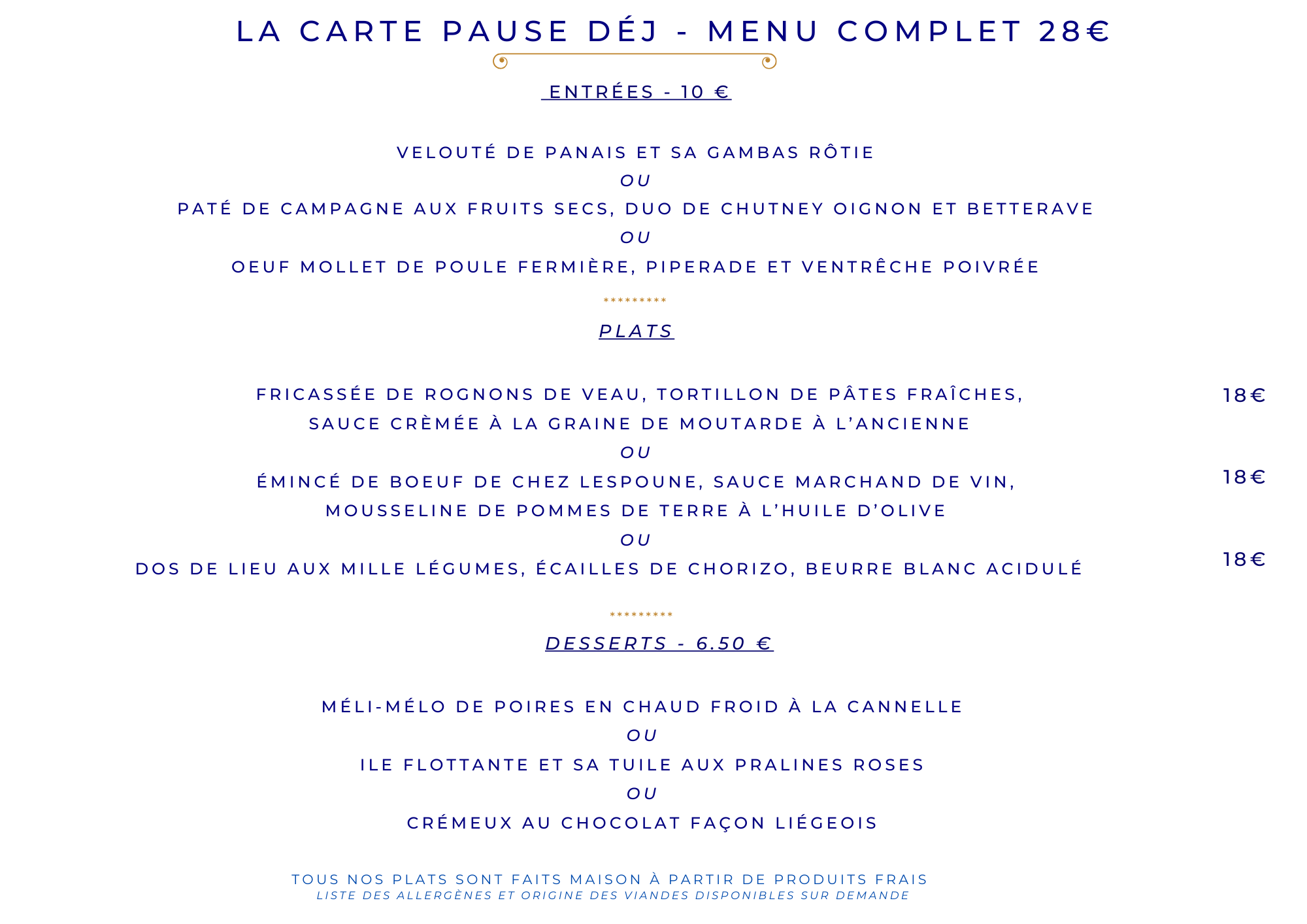 Le restaurant est ouvert tous les midis! Voir la carte Pause déj’ ici