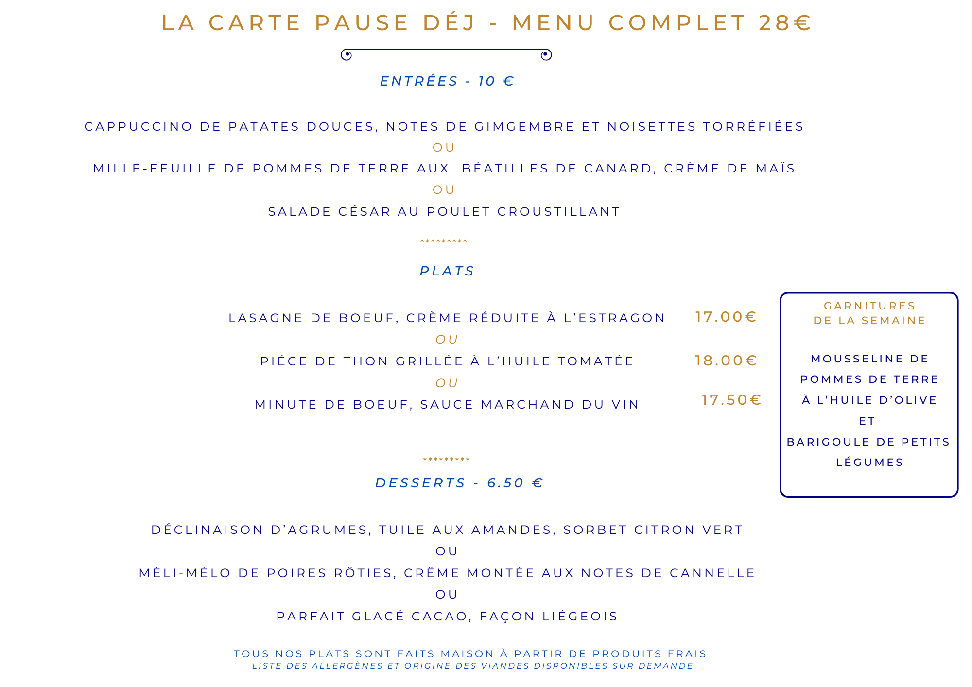 Notre restaurant est ouvert tous les midis! Voir la carte Pause déj’ ici