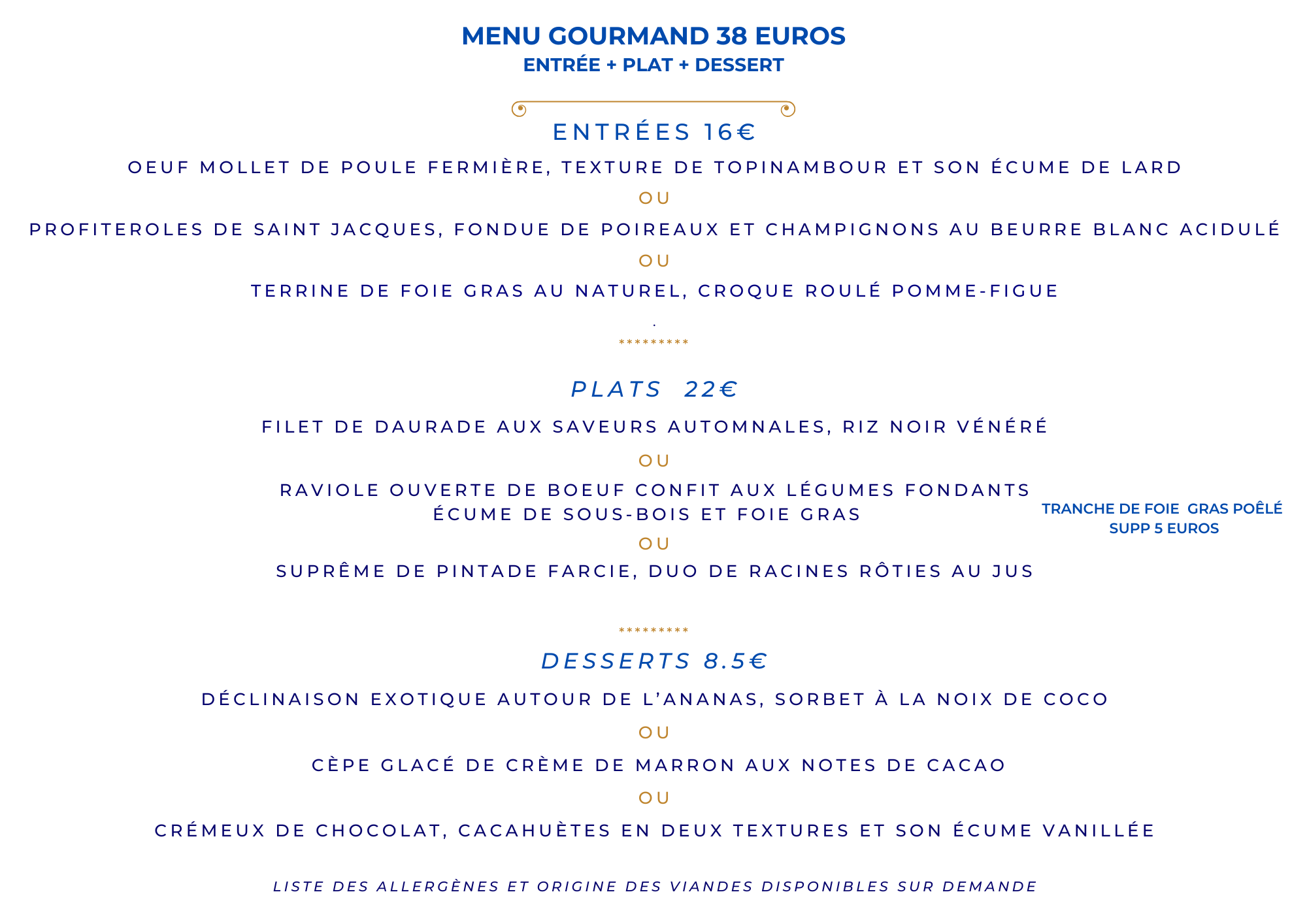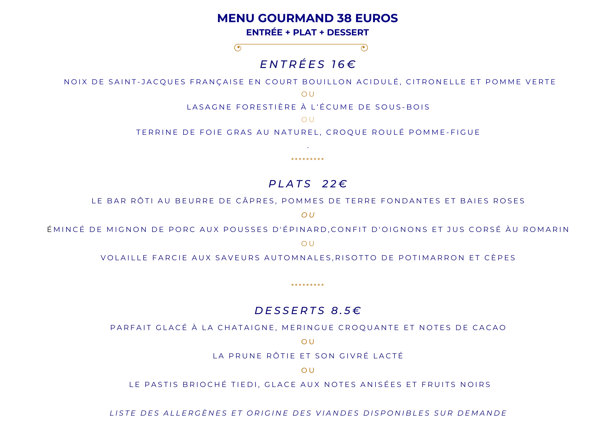 Nous servirons un Menu Dégustation de Noël tous les soirs du 01er au 20 décembre, sans réservation préalable. Pour vos repas de fin d’année d’entreprise, en famille ou bien en amoureux, contactez nous pour toute information. Voir le menu.